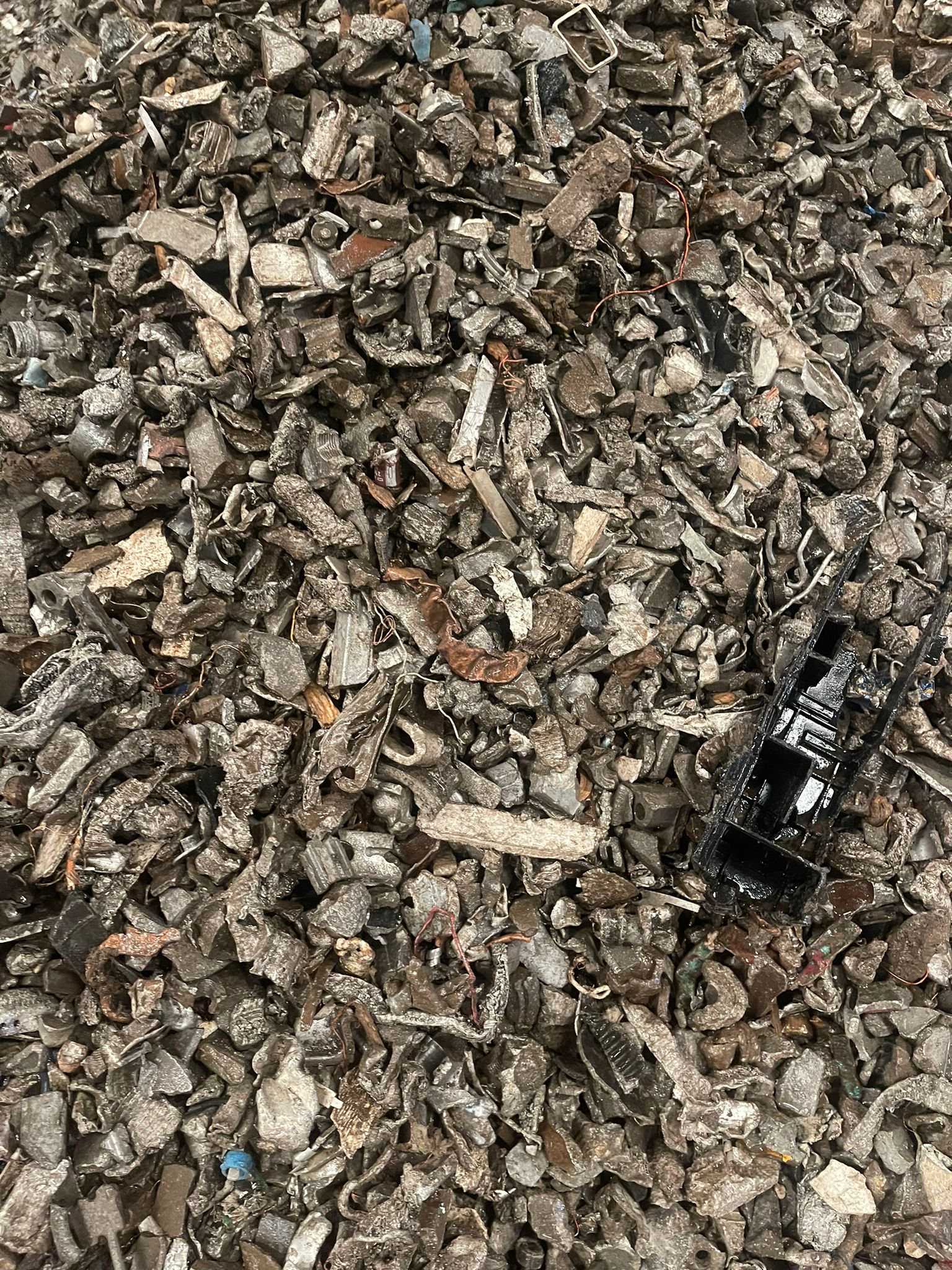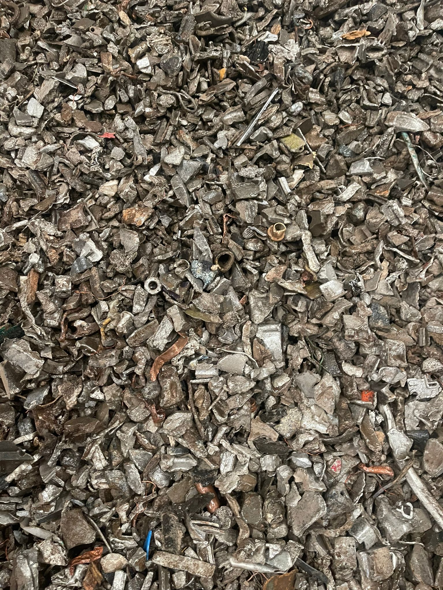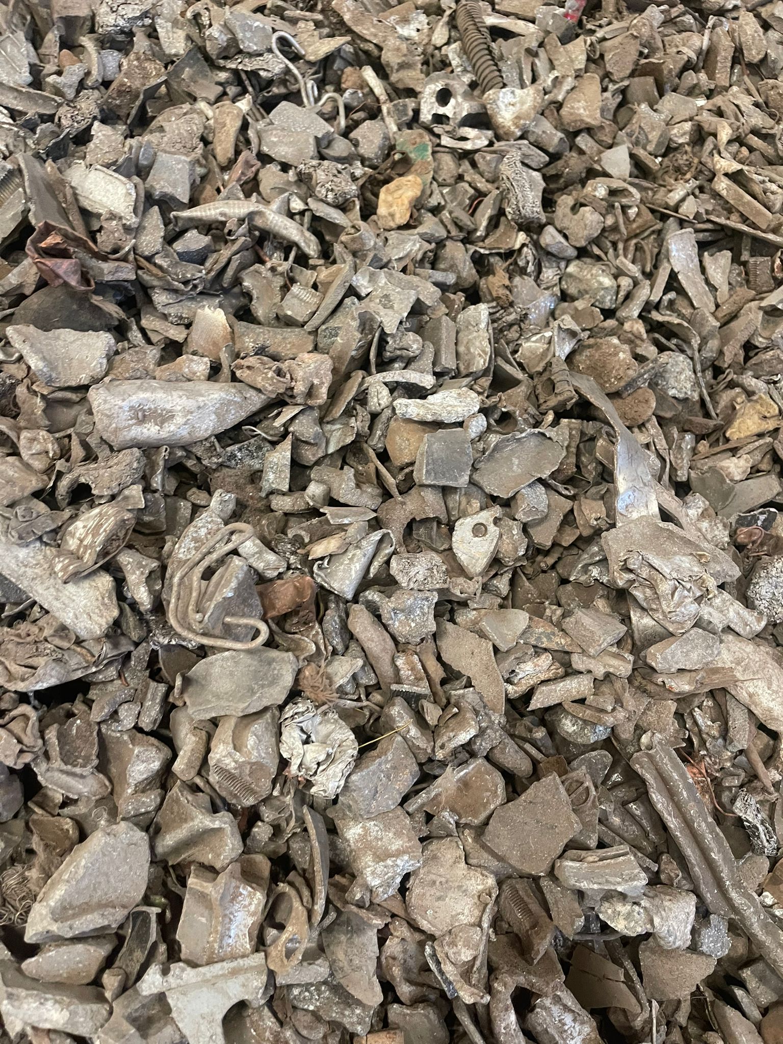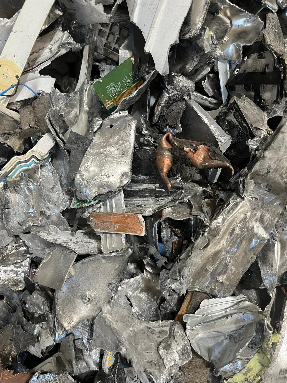 Small-sized Zorba scrap grade 95/10 with a high metallic content and moderate red metals presence, suitable for aluminium and heavy metals recovery after appropriate processing.
