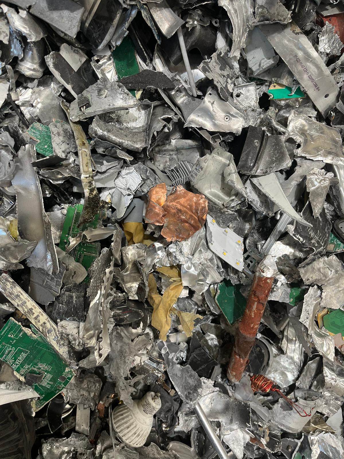 Zorba scrap grade 95/5 characterized by approximately 95% metallic content with a limited red metals presence. Material suitable for aluminium recovery and secondary Heavy metals processing.
